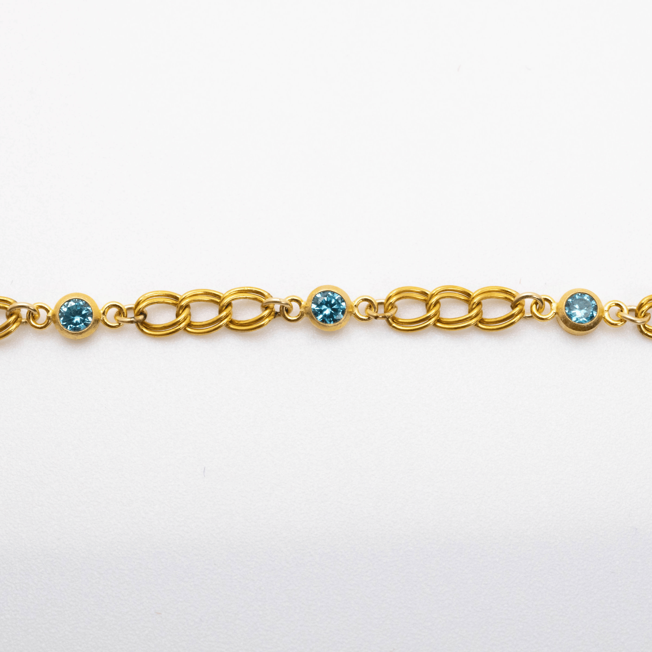 Bracelet chains for permanent jewelry on a white leather display
